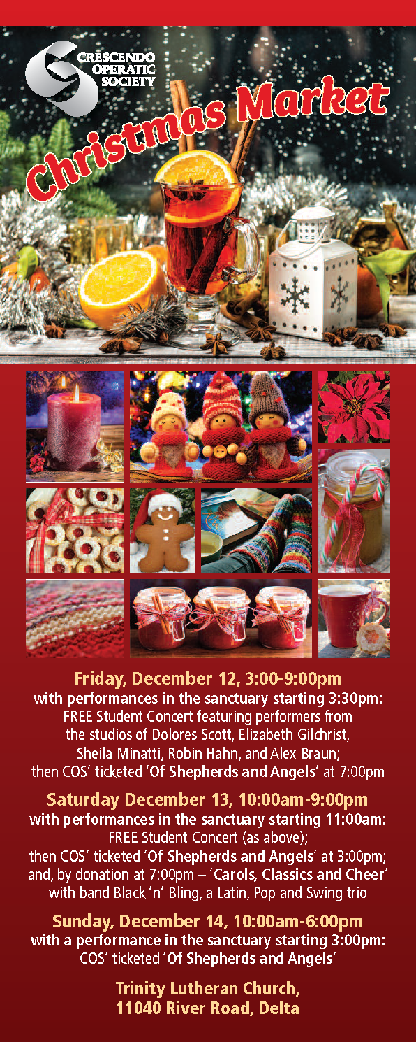 Join us for the Christmas Market and concerts happening at Trinity Lutheran, Delta.